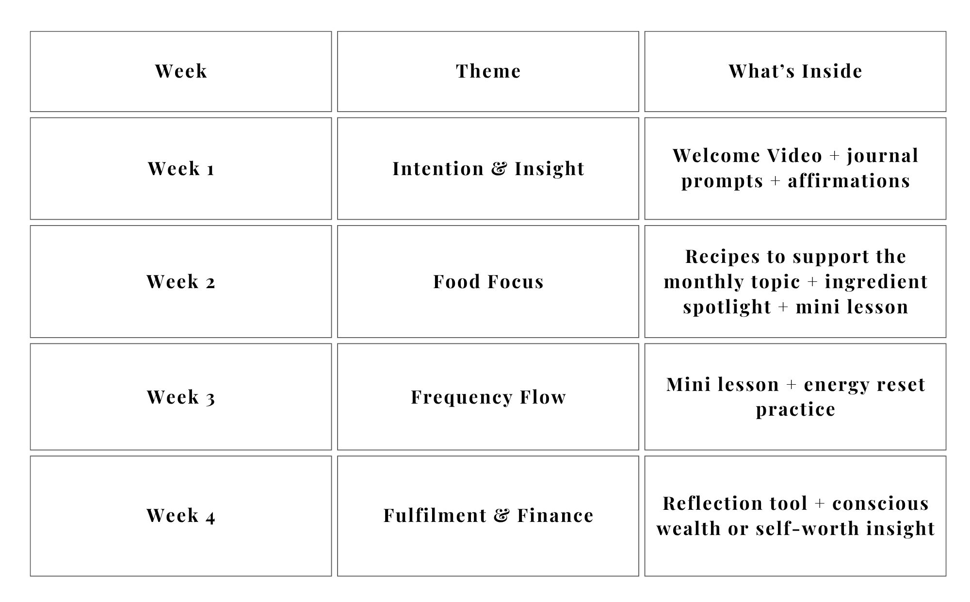 A new theme flows through every month â inspired by the seasons, the elements, and your inner cycles.